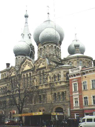 Panteleimonovskaya Orthodox Church, designed by the architects M. Nikonov and L. Prokopovich. In former times, the Church served as a seminary and during Soviet rule, the Church was a planetarium. Either way, Panteleimonovskaya is a true Odessa landmark, difficult to miss when you're heading downtown near the Odessa Train Station.